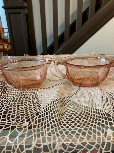 Anchor Hocking Princess pattern pink depression glass cream and sugar set